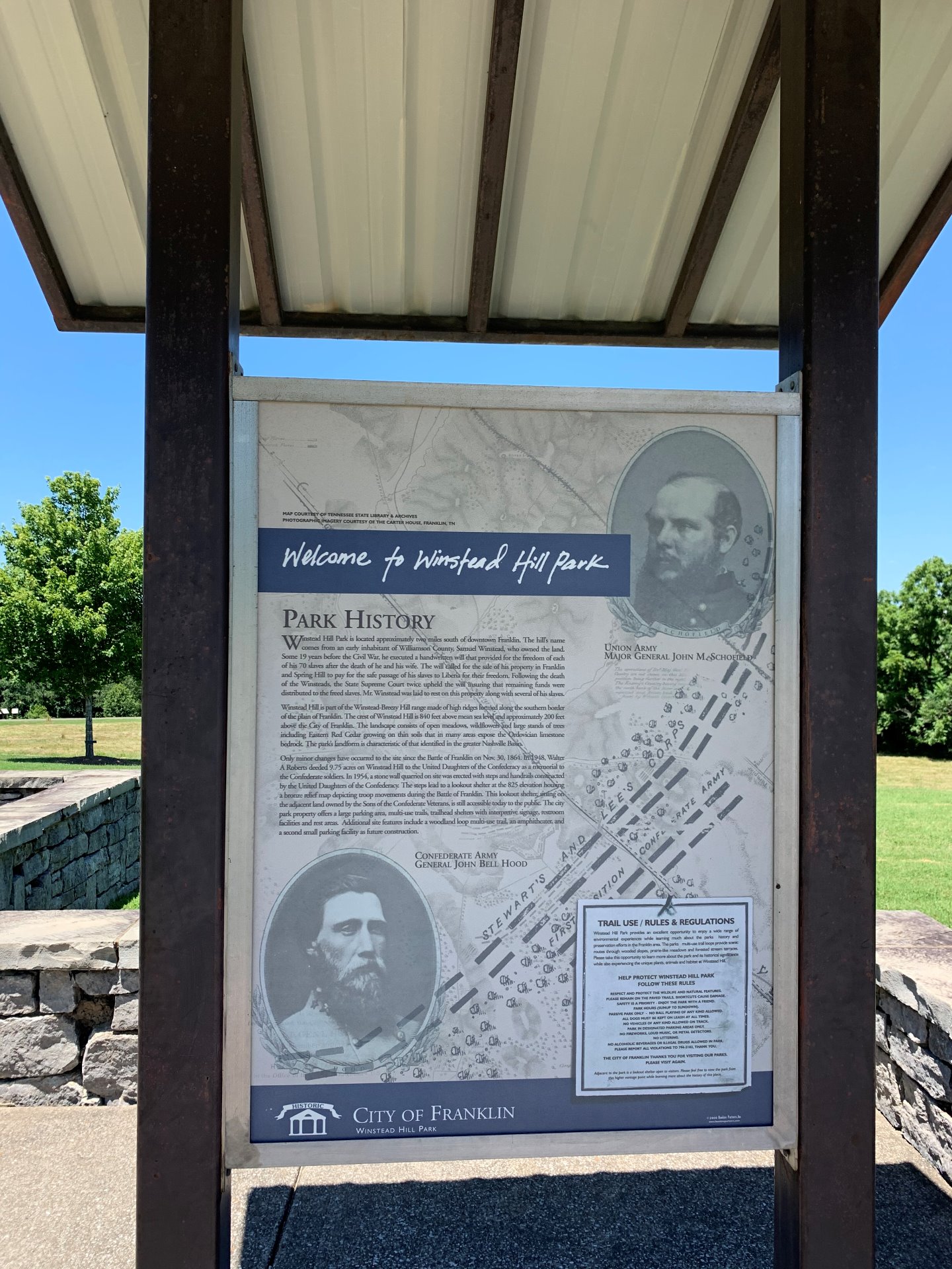 北軍のスコフィールドと、南軍のフッド、両大将の説明文。この2人はなんと軍人学校(West Point College)の同窓生だったらしい。